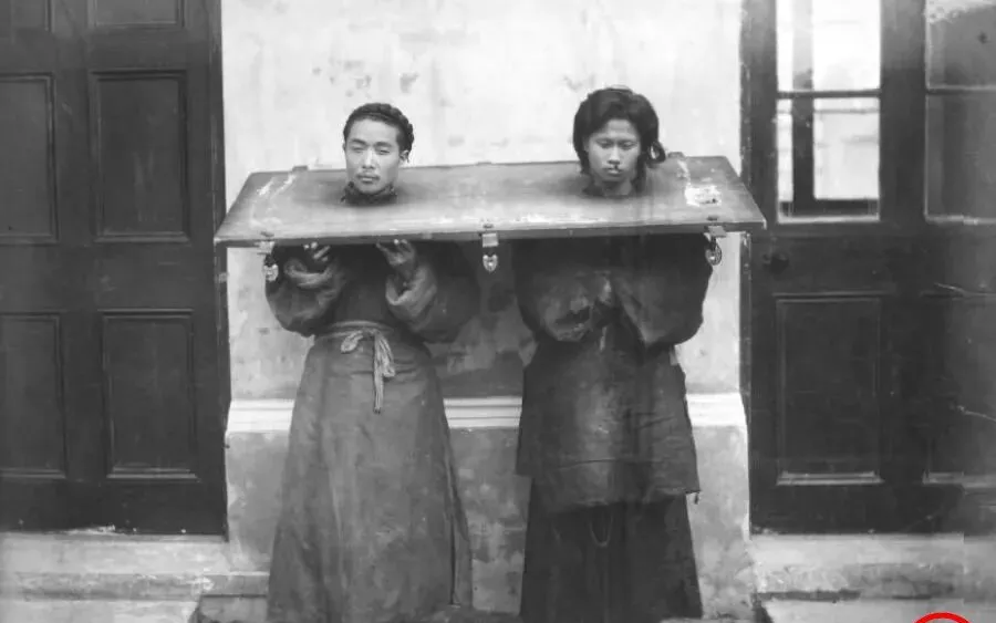 这块压在肩上的木板叫枷,两个人一体的叫连枷,板面厚重,前沿嵌了两把铁锁,脖颈卡在洞里,抬头低头都难,站久了肩窝火辣辣地疼,衙役多半是示众警戒,用意比刑罚还狠一点,现在看着只觉闷,谁都有错,可别整成这样窒得慌。