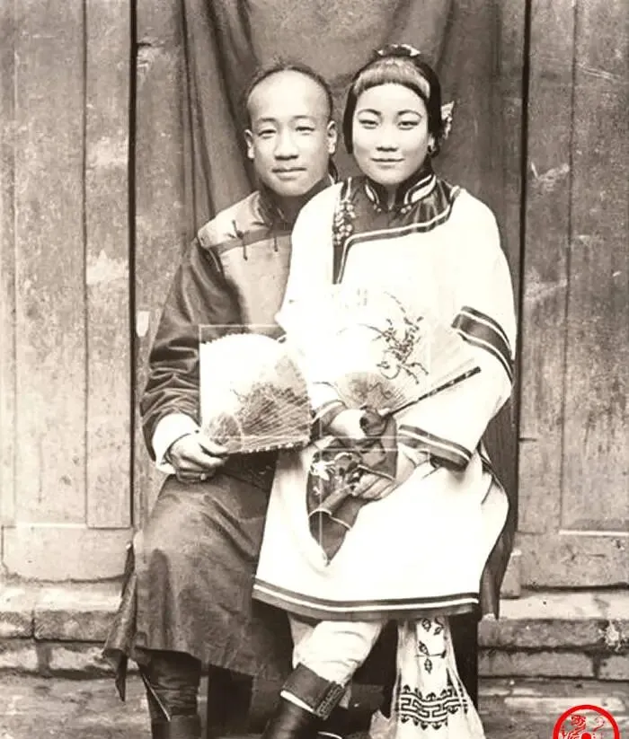 这个姿势叫放浪也叫亲近,女子身上绣蟒的软袍把腿面压出一道弧,男子捏着团扇假装端正,其实眼尾都笑弯了,镜头很老,胆子不小,屋门板后像还有人偷看,外头规矩紧,这里却有一丝不怕的劲儿,以前说“风月场里无真心”,现在想想,也许那一瞬的依靠是真。