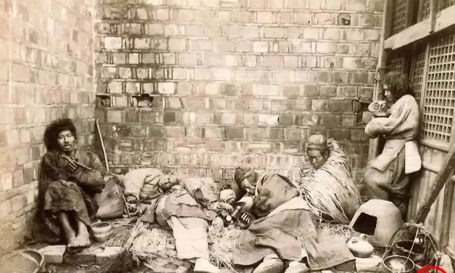 晚清老照片:青楼女子坐在嫖客大腿上,街头商户被迫插日本膏药旗。