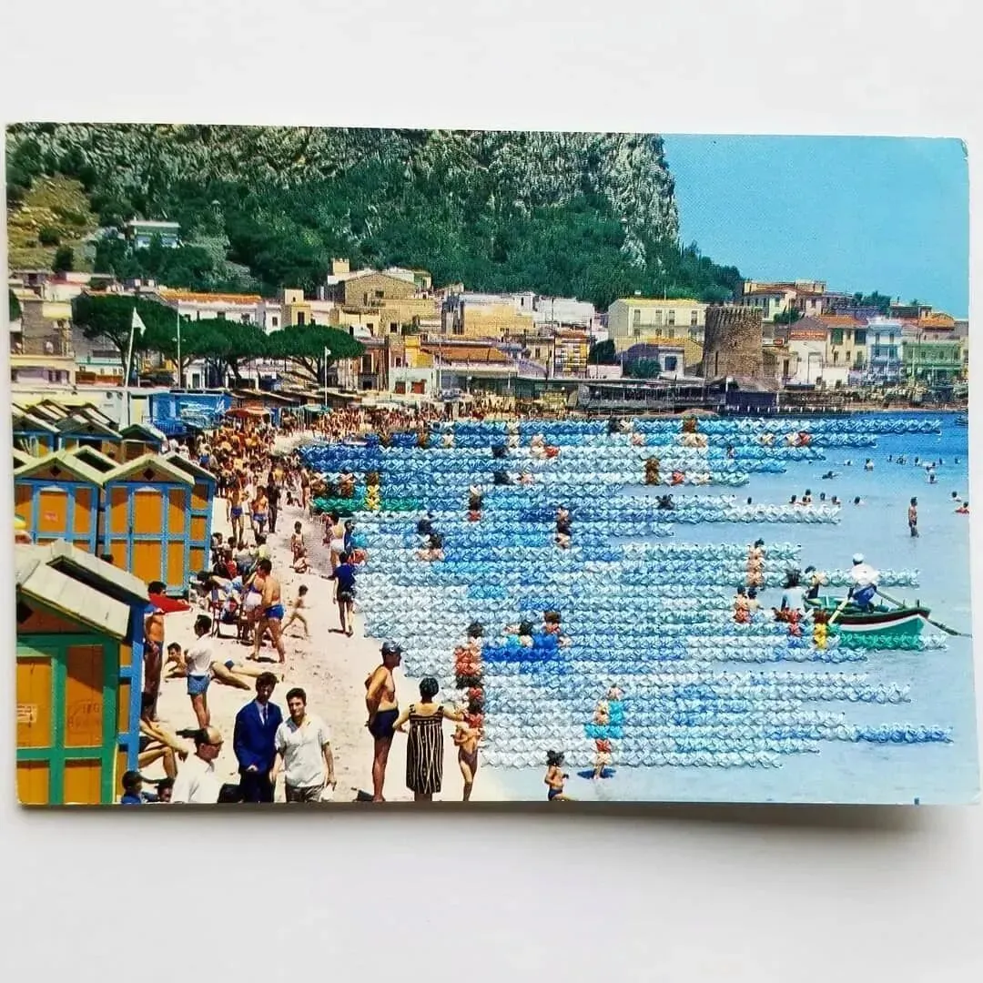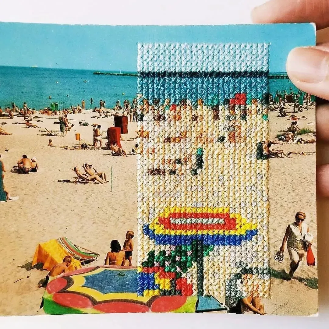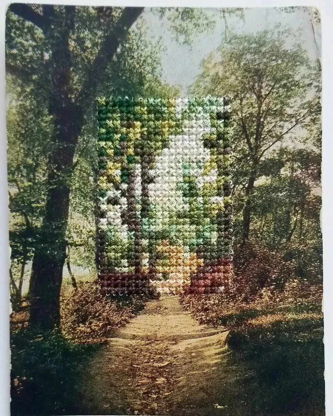 而在「永恒的旅行」系列里,Han 则将刺绣与风景明信片结合。