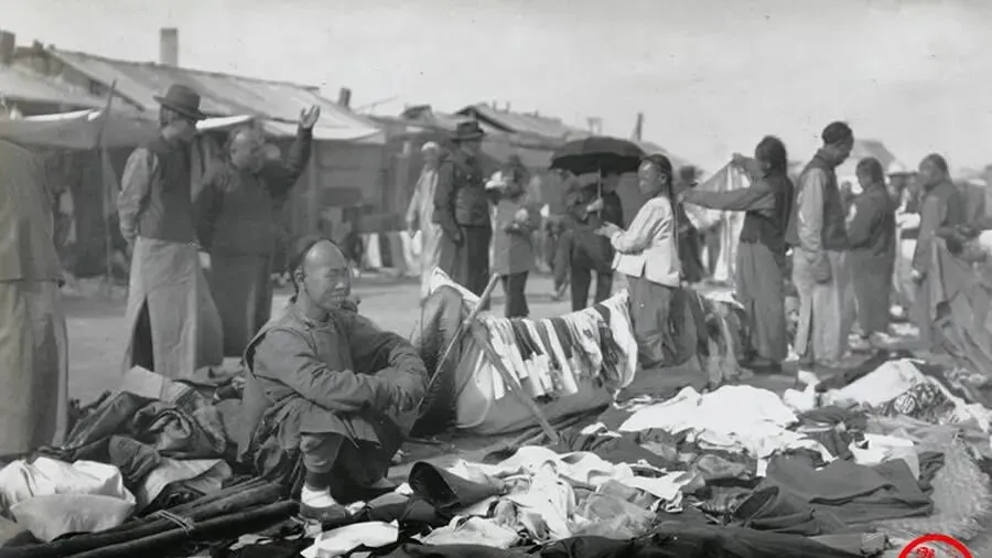 这个场景叫估衣摊,地上先铺灰布,再把衣裳一件件摊开,长衫棉袍夹袄都在,掌柜子蹲着眯眼看人,手里攥着铜钱串子,买主挑一件抖两下,袖口翻过来掰掰扣子,嘴里还嘟囔两句能不能再少点,奶奶说那时候新衣贵得吓人,孩子长得快,旧衣翻新接着穿就行,现在谁还会拿针线改衣服,手机上一点就到家了。
