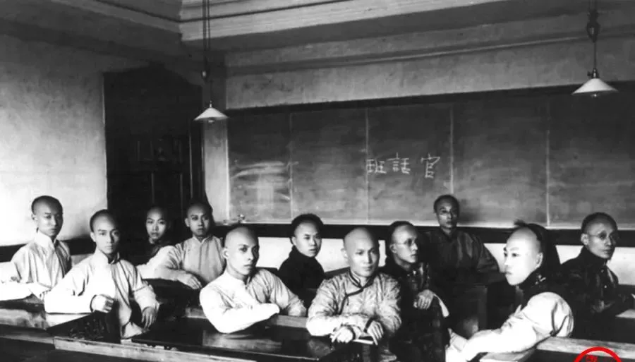 这个教室叫官话培训班,黑板上写得工整,灯罩一口口吊着,长凳排得直直,学生剃着圆头坐得笔挺,老师讲字音,嘴形要到位,抑扬顿挫跟着走,我上学时也练普通话,老师拿粉笔头敲桌沿,提示轻重缓急,放到这张照片里一对照,从南京音到北京音一路推下来,总得有人一遍遍念出来才成气候,现在扫一扫就有标准发音,过去全凭耳朵和耐心。