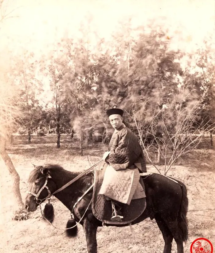 这张里的人骑着一匹矮壮的黑马,马镫短,缰绳勒得紧,身上裘皮坎肩厚得像被褥,林子里风一过刷刷响,他半回头的表情有点骄气有点戒备,奶奶说以前当官的多会骑,出门坐轿不如骑马痛快,可现在马成了运动项目,讲究头盔护具的规矩多,照片里这位随手一勒就跑的洒脱不见了。