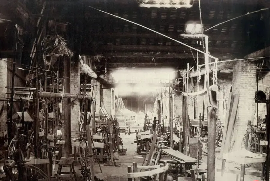 这个昏黄的大屋是纺织作坊,梁上吊着横七竖八的绳,地上坐着穿梭机脚踏车,光从屋脊的破口里斜着下来,尘埃在里头游,奶奶年轻时纺过线,她说手一拉一送,梭子在弦上叮地一响,布面就往前挪一指宽,以前是家家户户凑手干的营生,现在机器一开就是万米,慢工的细致被快工的整齐替了位,衣柜是更满了,手上的温度少了。