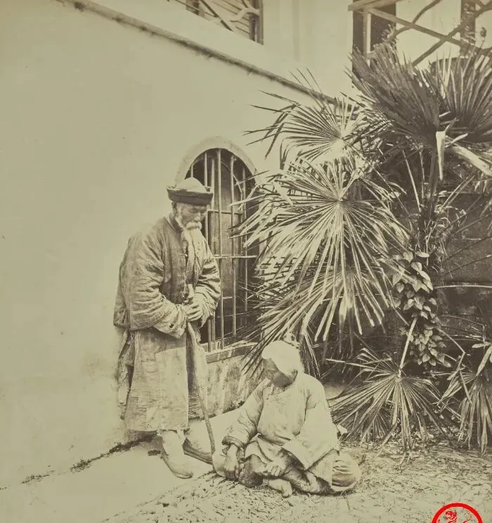 晚清老照片:富家千金小小年纪已缠足,农民吃完饭碗都舔干净。
