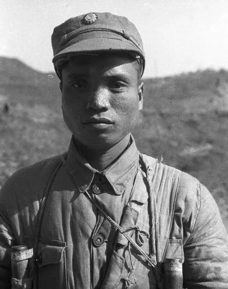 图中这个年轻面孔叫前线肖像,帽徽暗着光,衣襟处补丁斜着一刀缝上去,汗盐在脸上结了细白点,眼神直直地盯着镜头,没什么花活,像在说你看着我,我也看着你,爸爸见到这张只叹一声,“这是真苦相,也是硬气相”,现在拍照讲滤镜讲角度,那时讲不讲都一样,真相最刺眼。
