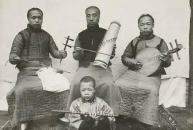 这几位是坐唱的乐班,二胡、月琴、板鼓一样不缺,小孩抱着小胡琴坐最前头,手指还不够长,弦被他拨得叮叮响,路人停下脚,听两句就走,调子还在耳朵里转。