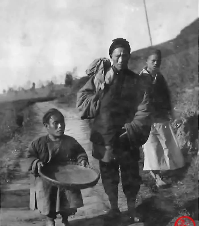 晚清老照片:穷人饿到全身浮肿,“快递小哥”步行送邮件。