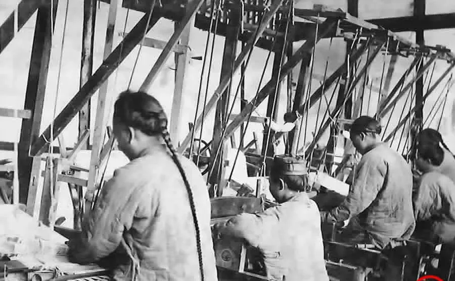 图里这一排木机架就是老式织机,纱筒搁在侧边,细绳从上头垂下来,脚一踩踏板,梭子“嗖”的一下穿过去,屋里全是“哒哒”声,墙角堆的棉纱像没睡醒的人一样塌着,爷爷说当时城里已开始上汽机了,作坊还靠脚踩手拉,出一匹布得熬大半宿,好处是结实耐穿,坏处是慢,慢就等着被淘汰。