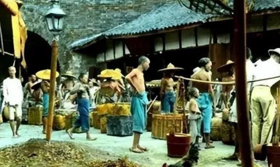 这些大缸叫酱缸,赤膊的伙计腰间系布,木耙一搅一搅,日头一晒冒出咕嘟泡,空气里全是黄豆发酵的香,别看脏兮兮的,舀一勺下锅,炒出来的回锅肉能迷人。