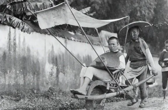 这一轮在前的叫手推车,车伞支在竹竿上,遮日晒雨淋,车夫肩上勒着粗绳,脚下咯吱咯吱碾过青石,孩子坐车舱里摇着脚丫,问娘“到了没”,娘笑着说“快了快了”。