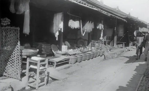 这一溜铺面卖的是簸箕筲箕,竹片浸了水更听话,师傅手里一压一挑,器形就圆润起来,那会儿家家都用,现在多半成了装饰挂墙。