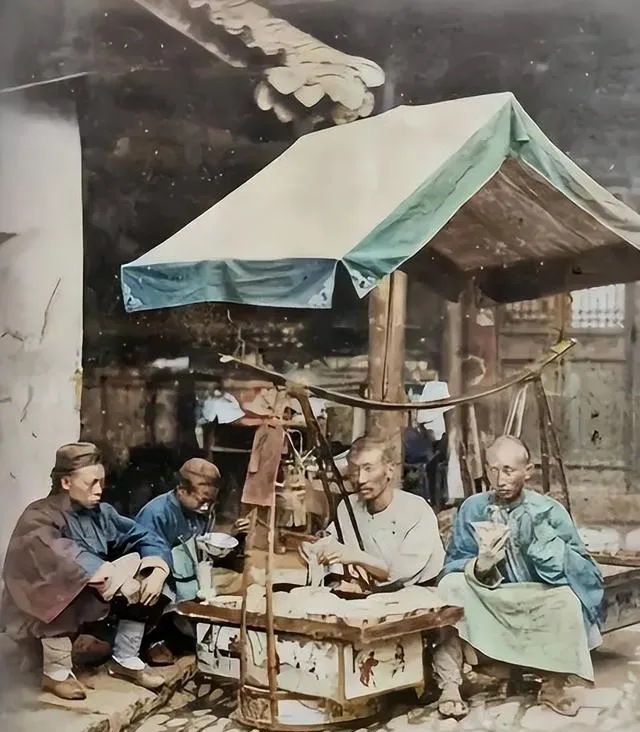 这口方桌边是豆腐摊,梆子一敲,咚咚脆响,热豆腐切成方方正正的坨儿,淋麻酱撒花椒面,香气蹿到屋檐上,隔条街都能闻见。