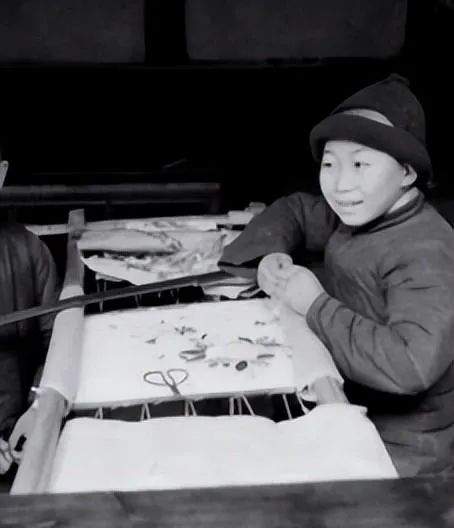 这张小脸红扑扑的是学绣的娃,丝线在指尖挑来挑去,竹框绷得紧,针脚像雨点,一朵蜀绣的花就这么开在布上。
