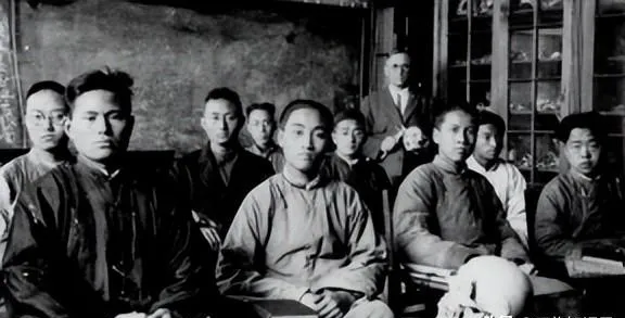 这一屋子的年轻面孔是学生,黑板边站着洋老师,桌上摆着模型和头骨,灯光打在眼睛里亮晶晶的,谁都知道走出这间屋,世界会更大一点。
