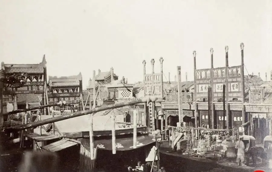这个密密匝匝的街口叫东四牌楼一带,木牌匾叠着木牌匾,花棂窗上挂着绸缎和灯笼,店招上“记”“号”成片,看得人眼花,照片里架了根长木杆,多半是搭棚子的骨架,商贩顺着街一字摆开,喊“布匹新到”的嗓门能顶过半条街,小时候我跟着姥爷走过类似的小市,最怕的是被人流一挤,手里的糖葫芦就歪了串,现在逛街进商场,地面擦得发亮,吵闹归吵闹,脚底下干净是硬道理。