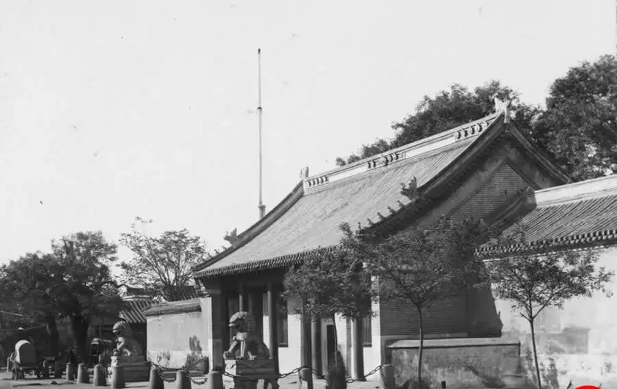这处西洋味儿的院门叫法国公使馆,琉璃瓦没少,檐口收得利落,门旁一对石狮子蹲着,前院用铁链拉了桩,远处有洋车歪着停,屋里的人估摸在调电报,彼时城里中西杂处,一边是胡同炊烟,一边是洋钟嘀嗒,两套时间在同一条街上走。