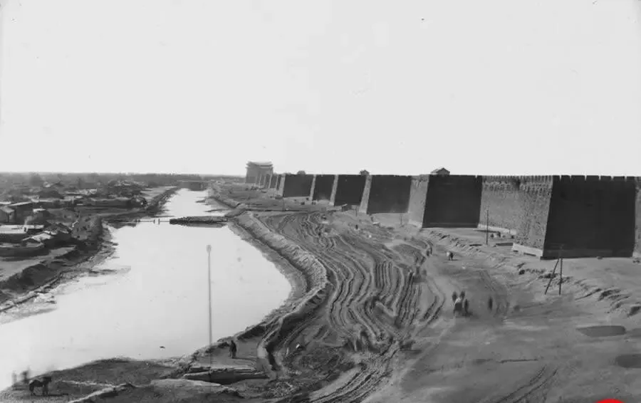 这条贴着城根走的水沟叫护城河,照片里肉眼能看出发白的河床,水面瘦得只剩一道细亮,岸上车辙一道一道,像被耙子刮过,爷爷说,热兵器上来了,城墙再高也挡不住炮火,护城河一枯,城门就像没锁的门,现在咱们看城楼多半当风景,那时候它可是保命的硬壳。