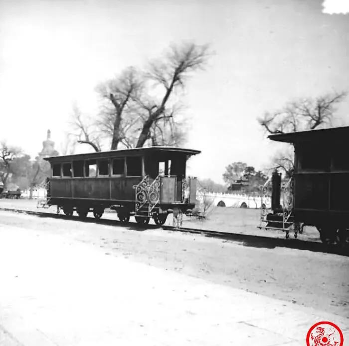 晚清老照片:慈禧坐火车往返寝宫和用膳处,城墙上杂草丛生人迹罕至。