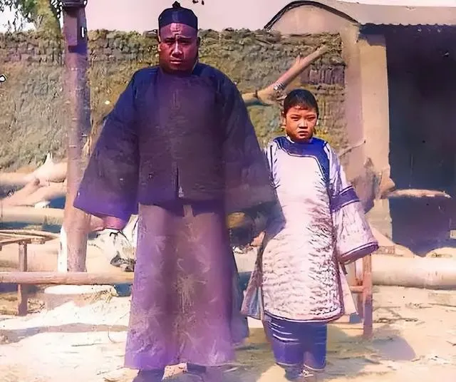 这个穿直裾的男人戴瓜皮帽,身边孩子穿棉袍挽着袖,院里搭木桩晒东西,土墙密密补过几遍,日头一出来光把影子切得笔直,日子清冷,却也实打实。
