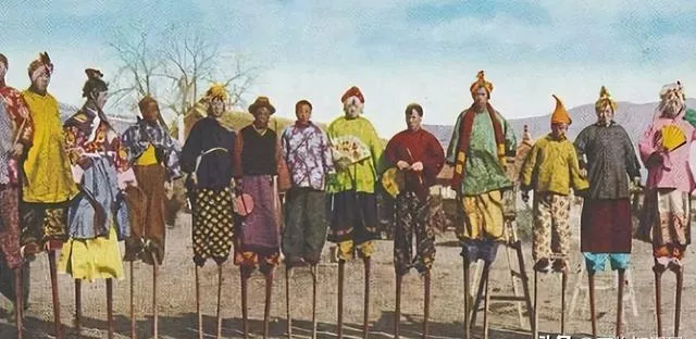 这一排人脚下全是木桩,衣裳花里胡哨,扇子扯得呼啦响,踩跷的要心不慌手不抖,台下孩子追着影子跑,热闹一到晚上才散。