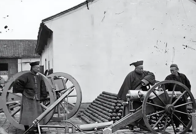 图中这架家伙抬着轮子,绿壳黑管,树干被扫得豁口外翻,旁边西装马褂站成一排,一位老臣盯着伤口愣神,这一下算是看明白了,世界早换了打法。