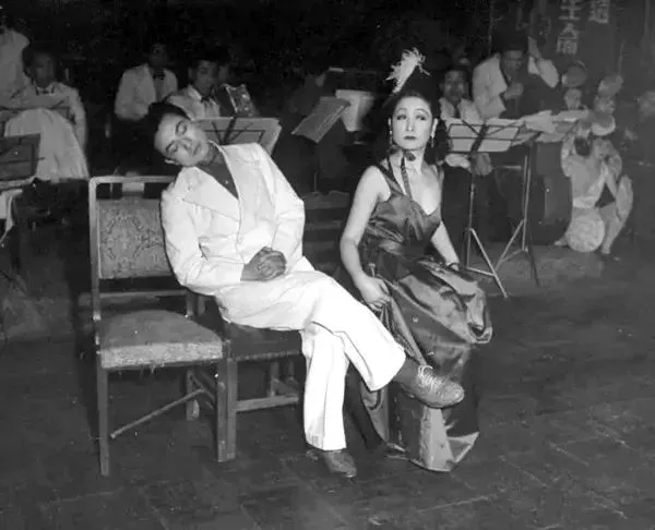 1946年3月,沈阳,日本女舞者在表演空隙休息,台下是一群喝的酩酊大醉的苏联红军军官。