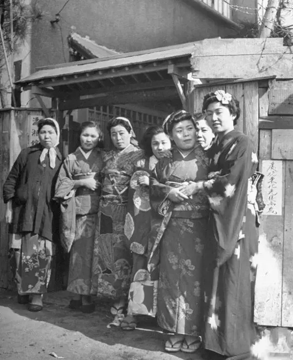 1946年3月,沈阳,穿着传统和服的日本妓女,她们的服务对象是苏联红军,这家妓院的名字取自中国古代名著《红楼梦》,叫“潇湘馆”。