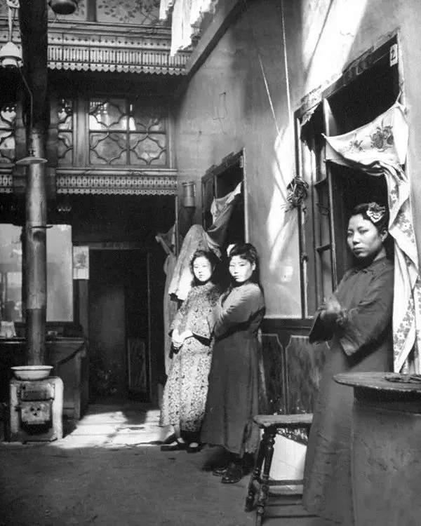 1946年3月,沈阳,妓女们站在妓院自己的房门口招揽客人。