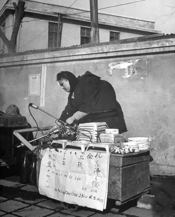 1946年3月,沈阳,一个日本妇女正在街头变卖她的物品。
