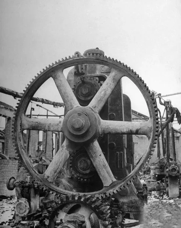1946年3月,沈阳,这是一家原来的日资工场,它已经被苏联人搬运一空,只有这个巨大的钝齿轮机器还没能被搬走。