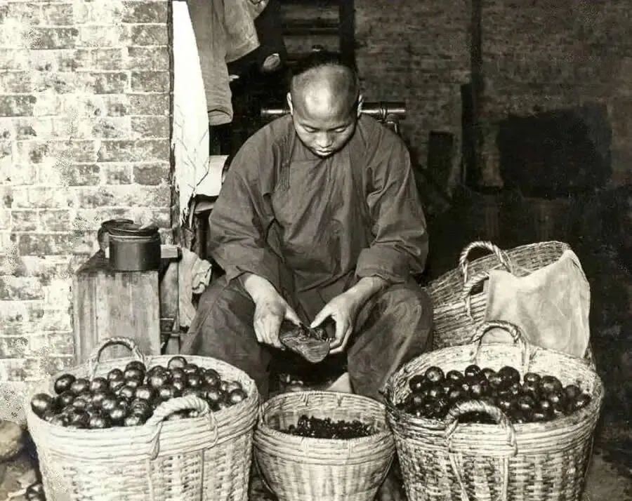 这个作坊口口相传叫姜厂,图里却在捣鼓果子,木桶里一抔一抔地挑拣,竹篮边缘磨得发亮,墙根潮白,男人垂着眼皮不出声,手上却飞快,把烂果剔出来放边上,剩下的洗净煮透,沥干再装坛,奶奶说那年代想要甜味不容易,熬一锅果膏,全院的孩子闻着香味都来门口打转