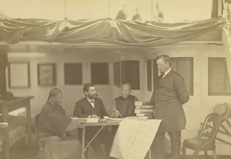 这一桌人里,穿长衫的多半是通事,也就是翻译,几本厚厚的书叠在一旁,桌上一张中文文书铺开,边上人拿着笔头,像是在互相核对,我最喜欢这种安静的画面,没刀枪,也没口号,只有人和文字在过招,妈妈说那阵儿通事挺吃力不讨好,现在倒好,学门语言就是饭碗。
