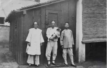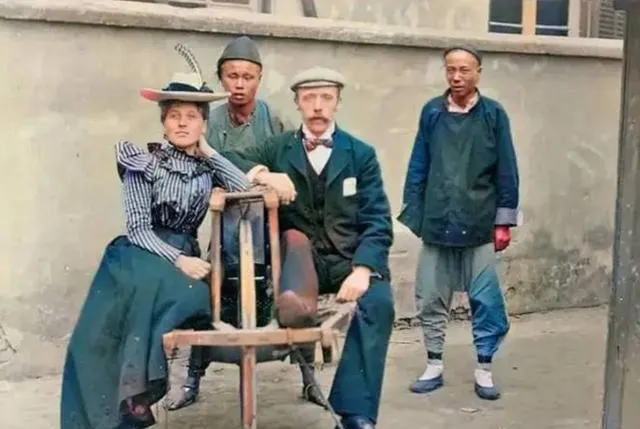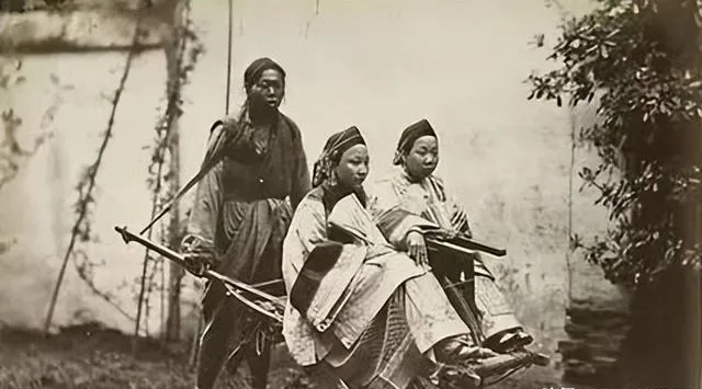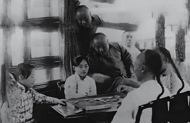 晚清老照片:男男女女挤在一起打麻将,囚徒感觉丢脸躲避镜头。