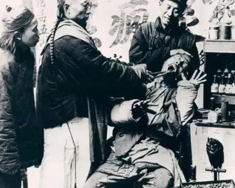 这几幅拼在一起更有味儿,独轮小车一前一后坐两人,后头推车的是个瘦高个儿,青筋一绷就带着走,旁边还有洋先生开刀治病,围着的人探头张望,手心攥汗却又不敢离远,我妈说以前看中医多,医院里白袍的还稀奇,街口拔牙的用铁钳子咔一下,疼得人直翻白眼。