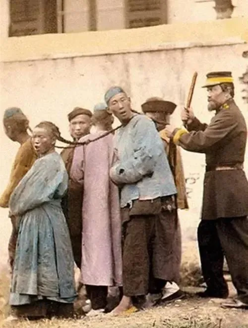 最后这一组最揪心,图中这个人被押着走,双手努力捂脸不想让人认出来,旁边还有被绳子吊起受笞的,脚尖点着石台,身边全是看热闹的,最狠的是公刑场,刀抡起来落下去,尘土一扬,冷风从脊背上走过,现在想想,法治这事儿一步一步往前走,才知命是多金贵。