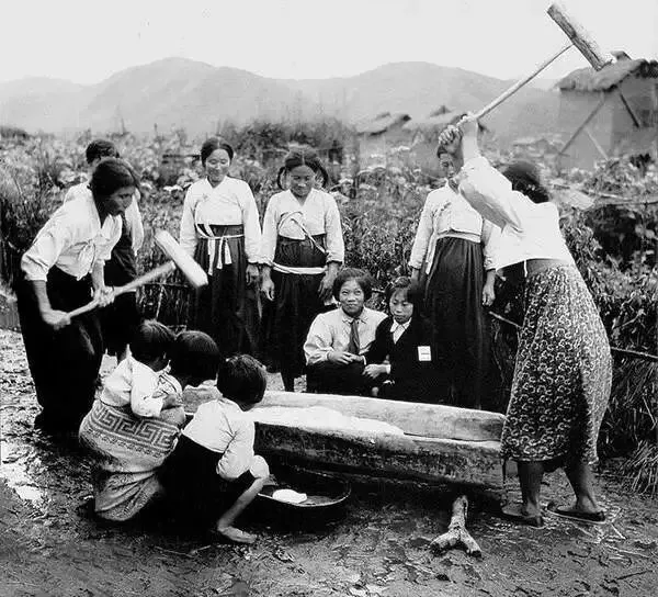 △1957年,吉林延边,做传统打糕的朝鲜族妇女。