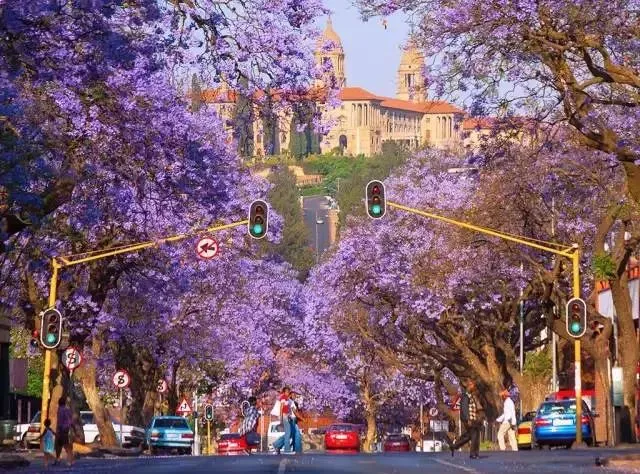 △南非进入最迷人的时期,蓝花楹盛开美呆了。