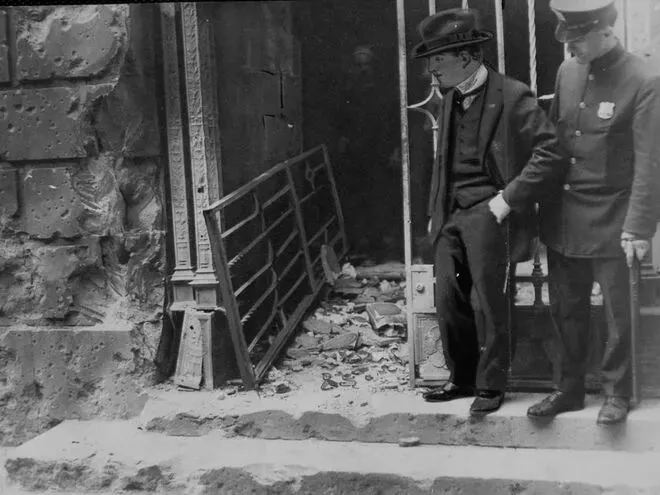 据警方调查,停在华尔街摩根大通银行门前的马车是这起惨剧的源头,马车车厢里装了45公斤的炸药,另外为了增加爆炸的威力,还装了230公斤的小铁片。