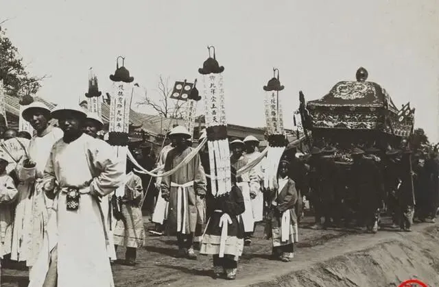 这个长队抬着的是彩顶大轿,前头是引魂幡,幡面上写“驾此祥云上西天”,两侧执事腰里挂铜铃,走一步响一下,抬杠的肩窝里垫着麻绳,汗顺着帽檐滴下来,这阵仗看官帽和杠夫数,少说也是个四品,奶奶说那时候讲体面,活着体面,走也得体面,现在哪有这么多事,花圈车一排,亲友鞠个躬就散了。