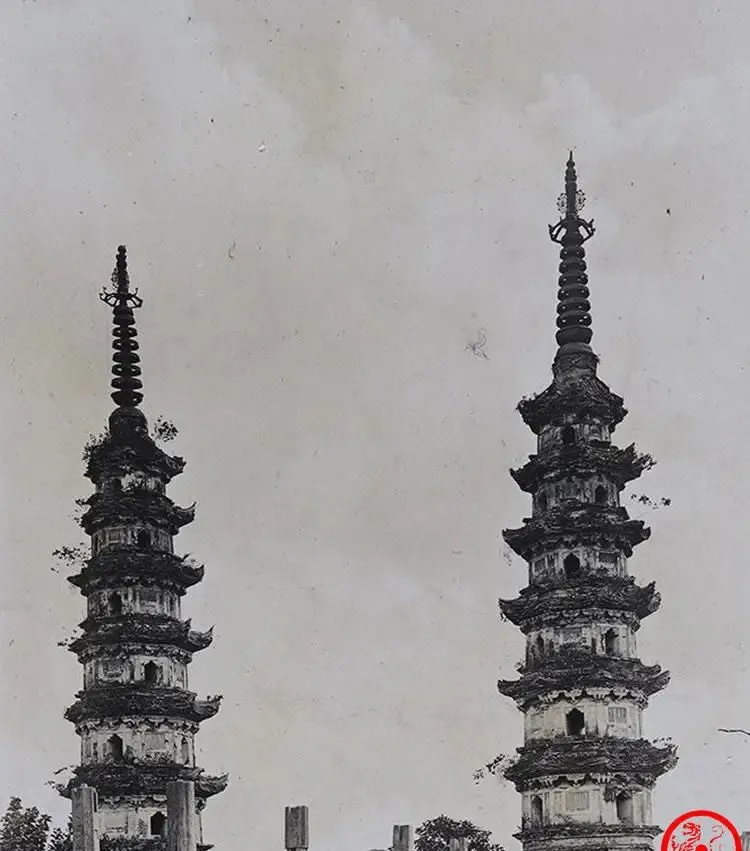 这两个瘦高的就是罗汉院双塔,一座叫舍利塔,一座叫功德塔,砖层一圈一圈叠上去,檐角挑出细牙,风一刮发出细细的嗡声,像竹片在颤,那会儿城里人走夜路,抬头看塔尖亮黑的轮廓,心里就有了方位,塔在那儿,人就不慌。