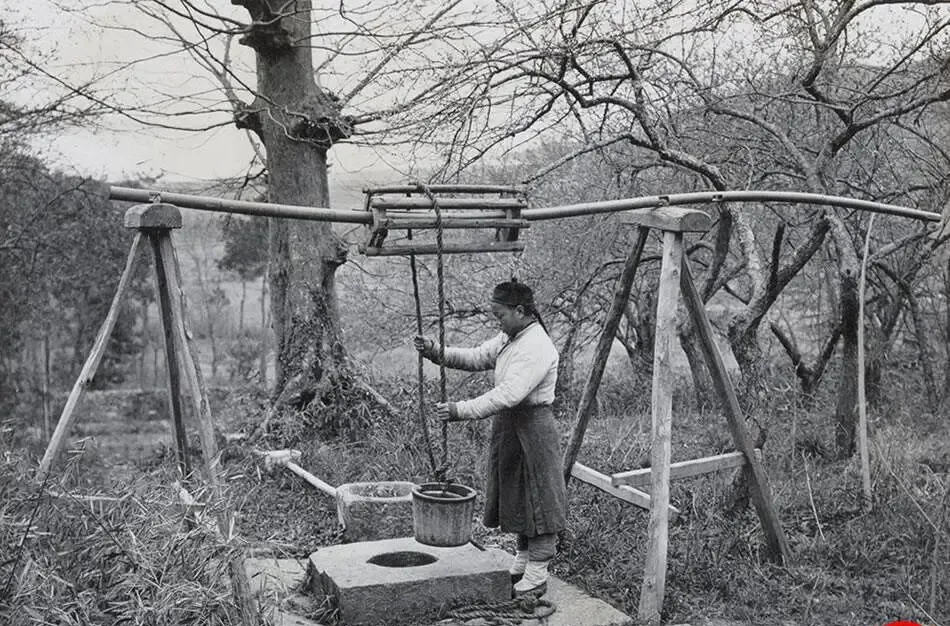 这个叫辘轳井,木架三足立,横梁上装辘轳,麻绳绕两匝防打滑,水桶是铁皮卷的,桶口包了铁边,落水时会叮一声,早晨第一桶水最凉,母亲说那时挑水回家要先灌灶,一碗开水摆上桌,屋里才算醒来,现在拧龙头就有,谁还会数辘轳转了几圈呢。