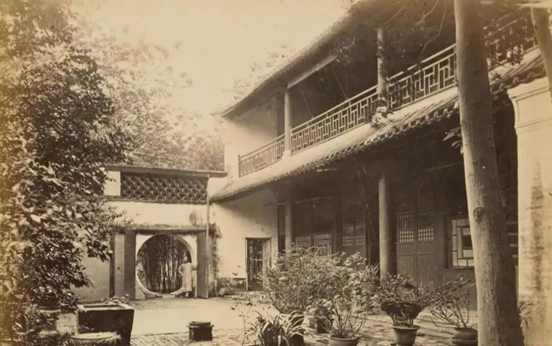 这个端坐的男人穿官服,旁边夫人戴着沉甸甸的串珠和纹边大袖,孩子立在一侧,神情拘束,背景里摆了香炉和花瓶,讲究体面,讲究排场,摄影师让他们别眨眼,估计足足憋了半刻钟,以前拍一张像要请人、要借景、要正衣冠,现在举起手机咔嚓一下就完事了,时代变了,人心里那点体面却还是想留住。