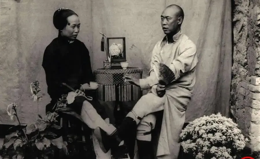 晚清老照片:夫妻合影亲密互动,男子贫困至极因偷盗被五花大绑。