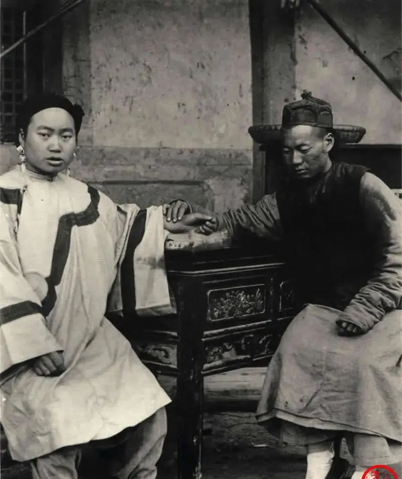 这个雕花小方桌是把脉桌,桌棱子上雕着葡萄藤,郎中手指搭在妇人的寸关尺上,另一只手拢着脉理,旁边的药篓半掩着,里头多半是黄芪当归之类,外行看热闹,内行看手劲儿轻重,爷爷说,男大夫摸到女子的也就这一步,再往下就不合礼数了。