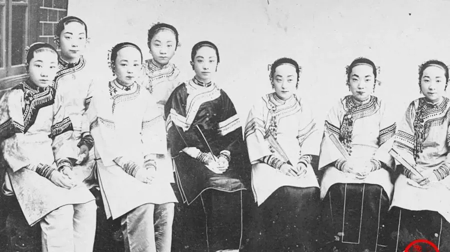这群姑娘穿的是收窄的袄裙,袖肥减了,腰线提了,连刘海都修了一指宽,坐成一溜儿,手里有拿扇的有捏帕的,神态不见羞赧,倒像在等人点名,外婆说,从这会儿起,女装一点点往利落走,以前走三步提一次裙摆的岁月就过去了。