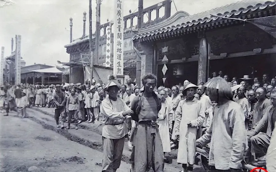 晚清老照片:男子被押赴菜市口刑场,大喜之日新人结婚拜天地。