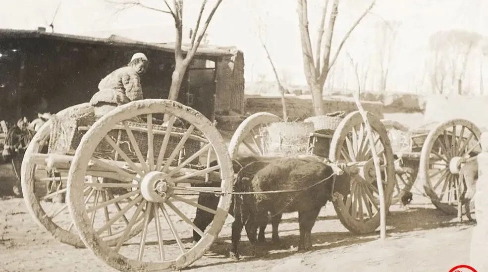 这个高个儿家伙叫大轮车,木辐子一圈又一圈,轮心用铁箍箍着,车厢编着粗棕绳,牛脖子挂皮垫,防勒得慌,车把手处还有根短鞭,车夫半蹲在板上回头招呼,尘土味儿和牲口热气想来就不小,走在黄土路上咯噔咯噔的,冬天冻得硬、夏天陷得深,以前跑运输靠牲口,速度慢却稳当,现在是高速路上呼啸一脚油门,远近立见分明。
