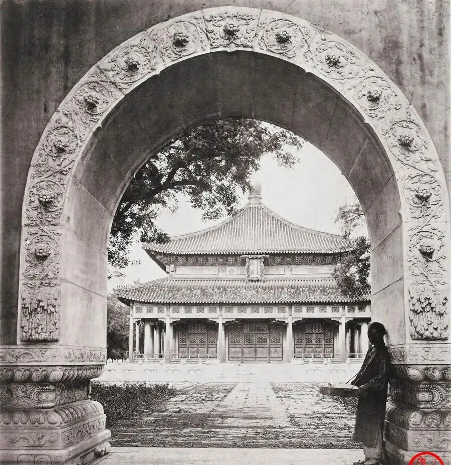 这个拱门里的殿叫辟雍,选的是方正的底座,四面对称开门,屋檐一圈琉璃瓦压着,拱券上的花纹密密实实,站在门洞里取景,前后像被框住了一样,奶奶以前路过这片时总说,读书人讲究个“方中有圆”,你看周围一圈水面,桥连四门,就是这个意思,现在大学校园也有湖有桥,可那会儿讲学是件隆重的事,进门得束衣敛步。