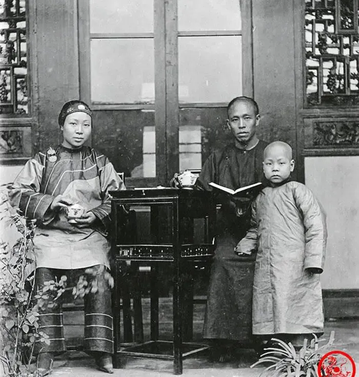 这个合影里,女主人穿的袄裤细看是暗纹绸子,袖口滚边,脚上裹着小脚,旁边的小几摆着茶盏和书,男主人手里翻着书页,神情不见嬉笑,屋后的格窗雕得细,说明家底不薄,奶奶看见这张就叹气,说以前拍照可郑重了,洗了头换了衣,端坐半日不敢眨眼,现在大家手机一举,嘀嗒一下几十张,反倒少了那点仪式感。